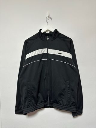 Chaqueta deportiva trackjacket zip up Nike Swoosh bordado logo en parte trasera vintage original, estilo Y2K / años 2000, estilo blockcore sport. Marca: Nike Talla: M Colores: Negro y Blanco Época: 2000's / Y2K #vintage #vintageclothing #vintagesportswear #retro #retrostyle #streetwear #streetstyle #athleisure #y2k #y2kfashion #90sfashion #2000sfashion #unisex #urbanwear #oldschool #archivefashion #vintedfinds #vintedstyle