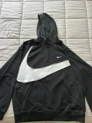 Sudadera deportiva Nike con un diseño llamativo. - Cremallera frontal parcial. - Gran logo Swoosh en contraste. - Pequeño logo Swoosh en el pecho.