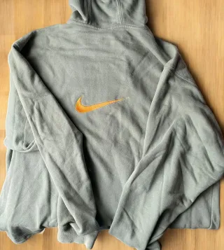 Sudadera vintage con el icónico logo de Nike. Etiqueta indica 12–14 (talla infantil), pero por medidas equivale a una S/M de adulto. Recomiendo revisar medidas.