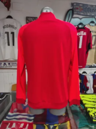 Sudadera deportiva del Tottenham con diseño moderno. - Color coral - Mangas y detalles en azul marino. - Cuello alto con media cremallera. - Fue obsequio de un jugador de Tottenham