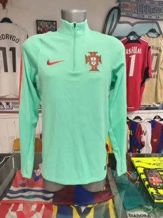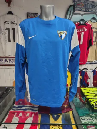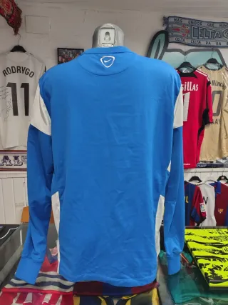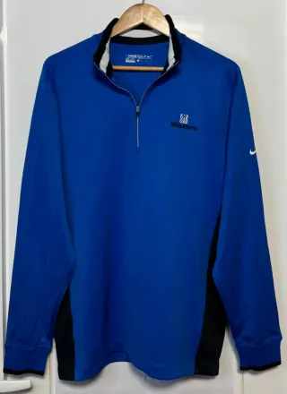 Sudadera deportiva de manga larga con media cremallera. - Diseño moderno en color azul. - Logo de Milestone en el pecho. - Logo de Nike en la manga. - Cuello alto con cremallera. - Puños y bajo elásticos. Medidas Hombros 49 cm Axilas 58 cm Largo 73 cm Envió inmediato