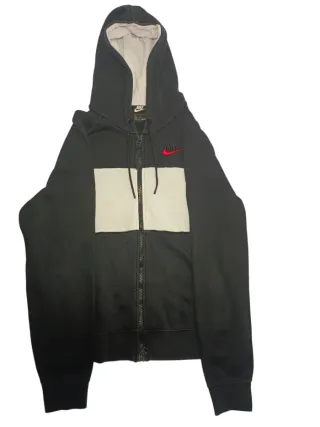 Sudadera deportiva con un diseño llamativo. - Combinación de colores rojo y negro. - Logo de Nike en el pecho. - Cremallera frontal completa. - Puños y cintura elásticos.