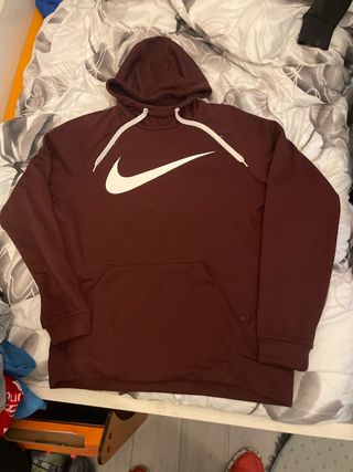 Sudadera de la marca Nike en color marrón, en excelente estado. Es más burdeos, pero no me deja seleccionarlo - Logo de Nike bordado en el pecho. - Cuello redondo. - Manga larga.