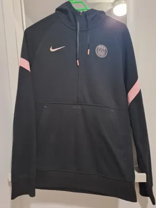 Sudadera con capucha y cremallera parcial de la marca Nike, con detalles en color rosa. - Diseño con logo de Paris. - Bolsillo tipo canguro.