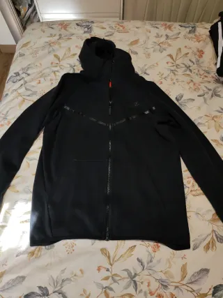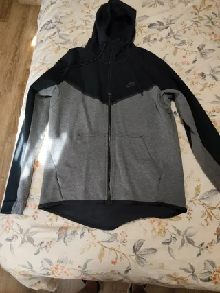 Chaqueta deportiva Nike Tech Fleece con un diseño moderno y cómodo. - Paneles en color negro y gris. - Cremallera frontal completa. - Capucha integrada. - Bolsillo con cremallera en la manga. - Talla M pero da menos talla - Calidad 10/10 -Precio negociable -Envío 24-48h