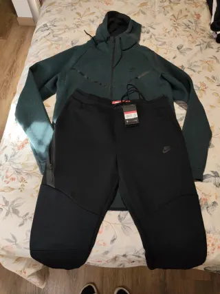 Conjunto deportivo Nike Tech Fleece. - Sudadera con capucha y cremallera completa. - Pantalones largos con bolsillos con cremallera. - Diseño moderno y cómodo.