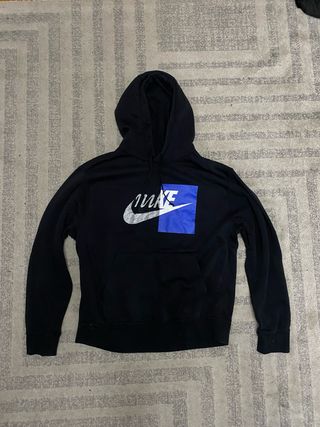 Sudadera con capucha de la marca Nike. - Diseño con logo Swoosh blanco. - Bolsillo frontal tipo canguro. - Cordones blancos ajustables en la capucha.Medida de hombro a hombro 60cm de la parte inferior 50cm y de lago(de hombro a parte inferior)por delante 62cm y por detrás 75cm