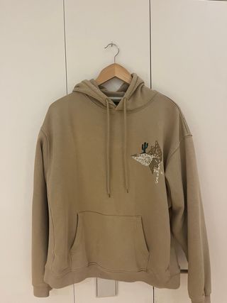 Sudadera Nike con capucha. Color “Gold” súper bonito y muy original (parecido a beige pero con una tonalidad más amarillenta). Dibujo del logo de Nike en blanco en la parte delantera y detalles de cinta con el logo en las mangas. - Capucha con cordones ajustables. - Bolsillo tipo canguro. - Cinta con logo en las mangas. La sudadera está como nueva. La compré el año pasado y a penas la he usado, por eso se pone a la venta. También para aprovechar y liberar algo de espacio en mi armario.