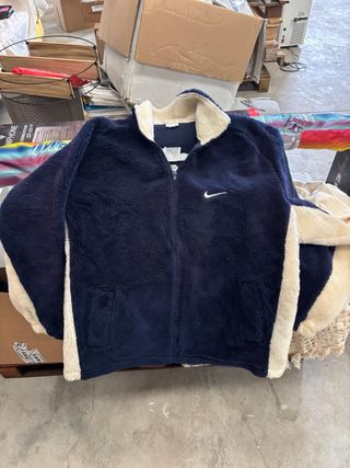 Chaqueta Nike Fleece Azul y Beige Vintage