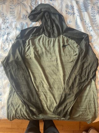 Sudadera con capucha y cordones. - Logo de Nike en blanco. - Bolsillo con cremallera en la manga. - Ribete verde en puños y bajo.