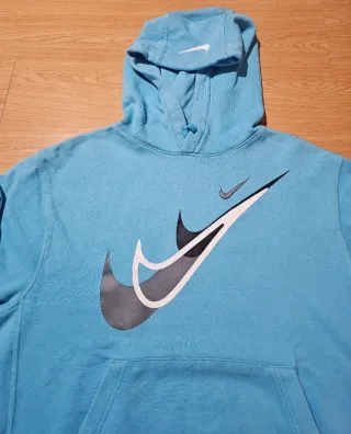 Sudadera con capucha de la marca Nike. Presenta un diseño moderno con el logo de la marca. Tiene una mancha en la parte trasera. - Color azul vibrante. - Detalle de logo en la capucha. - Diseño con swoosh grande en el frontal. #Nike #sudaderanike #sudaderacapucha #sudaderacapuchanike #embroiderednike #nikevintage #nikesportswear #nikeair #nikeretro #nikeair #nikeairmax #nikerunning
