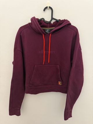 Sudadera con capucha de la marca Nike, en color morado y con el texto Nikecourt bordado. - Cordones de ajuste en color naranja. - Pequeño logo de Nike en la parte inferior.
