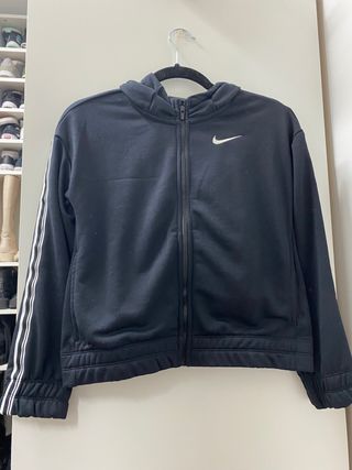 Chaqueta deportiva Nike de color negro. Está en buen estado. - Cremallera completa - Capucha - Detalles en gris
