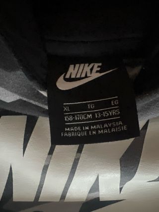 Sudadera con capucha nike - Diseño bicolor en negro y gris. - Bolsillo frontal tipo canguro. - Logo de Nike en contraste en la parte delantera. - Talla XL de niño