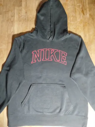 Sudadera de la marca Nike. - Color negro. - Diseño con letras rojas. -Talla 13-15 años, 150-170 CMS altura