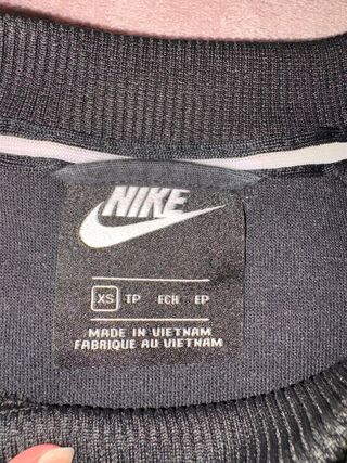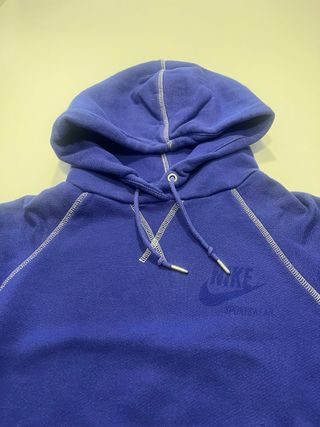 se vende sudadera de nike de diseño exclusivo y como se ve en las fotos tiene marcas de uso y en la ultima foto tiene una mancha pequela de azul. El motivo de la venta es que me queda pequeña.