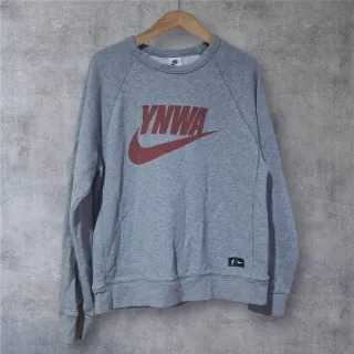 Sudadera gris con logo de Liverpool y Nike. - Diseño con el lema YNWA (you never Walk Alone, himno oficial del club) y el icónico Swoosh de Nike. - Detalle de un pequeño logo de la NBA en la parte inferior. - Mangas raglán para mayor comodidad.
