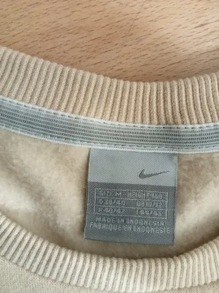 Sudadera Nike original en color beige arena, con el clásico Swoosh bordado en blanco en el pecho. Un diseño limpio y atemporal con toque vintage, perfecta para looks casuales, minimalistas o streetwear. Fabricada en algodón premium, con interior afelpado y textura suave, ofrece una comodidad excelente y mantiene su forma con el uso. El color beige combina fácilmente con cualquier outfit y da un estilo moderno y elegante. Talla: M (ajusta como M/L) Estado: 10/10 — impecable, sin señales de uso Tejido: Algodón premium con interior cálido Detalles: Logo bordado, corte clásico, color beige arena Estilo: Vintage minimalista