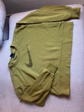 Sudadera / jersey nike de color caqui con logo tejido borreguito. Está en muy buen estado, la talla marca una XS pero es oversize y equivaldría a una S/M.