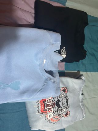 Ami, north face, kenzo Pack de 3 sudaderas de estas marcas las 3 tallan como una m (a un q en la de kenzo pone xl y la de north face l) quedan como una m estan sin usar