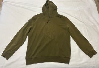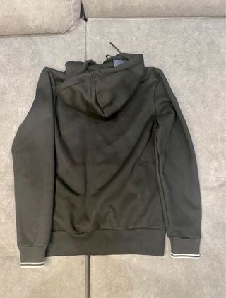 Sudadera con capucha para hombre, ideal para un estilo casual. - Cierre de botones en la parte delantera y cremallera - Bolsillo tipo canguro. - Puños y bajo elásticos. Muy buen estado