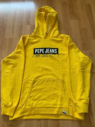 Sudadera con capucha de la marca Pepe Jeans. ‼️‼️‼️ TIENE UNA MANCHA DE ROTU; ver fotos. ‼️‼️‼️ - Diseño con logo frontal. - Bolsillo canguro. - Puños y bajo elásticos.