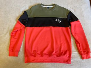 Sudadera con capucha de la marca Kanabeach. - Diseño de bloques de color con rayas. - Logo de la marca en el pecho. - Bolsillo canguro frontal. - Capucha con cordones. Usada, en buen estado.