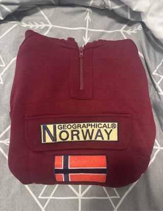 Sudadera con cremallera frontal y capucha, con diseño inspirado en Noruega. - Detalle de la bandera de Noruega. - Inscripción NOR WAY y 1814 en la parte frontal.