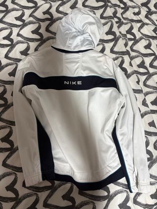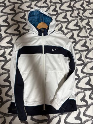 Sudadera con cremallera completa y capucha. - Diseño en color blanco y azul marino. - Logo de Nike en el pecho.