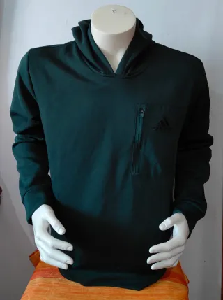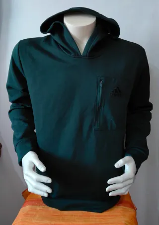Sudadera con capucha de la marca Adidas. Presenta un bolsillo frontal con cremallera. - axila a axila=56 - Diseño con capucha. - Bolsillo frontal con cremallera.