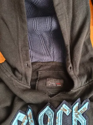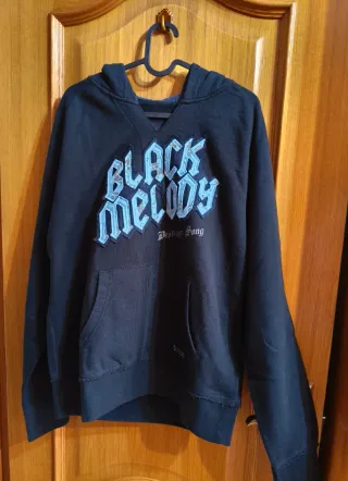 Sudadera negra con capucha de la marca Zara, ideal para jóvenes. - Diseño con estampado Black Melody en la parte delantera. - Bolsillo tipo canguro. - Puños y bajo elásticos.