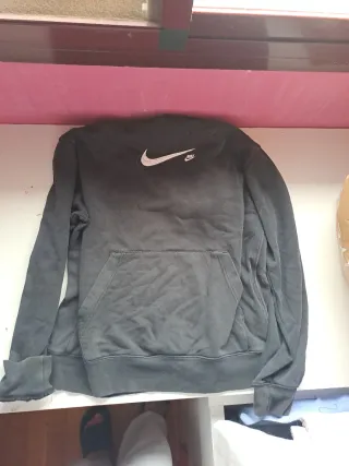 Sudadera con capucha de la marca Nike. Precio negociable - Color negro. - Logo de Nike en el pecho. - Bolsillo canguro delantero. - Cordones blancos para ajustar la capucha.