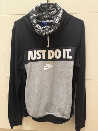 Sudadera con cuello vuelto y diseño moderno. - Detalle de logo Just Do It en el pecho. - Combinación de colores negro y gris. - dos bolsillos laterales con logo marca en el interior, Como nueva