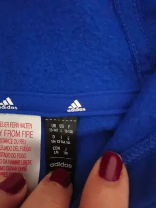 Sudadera Adidas de manga larga en muy buen estado. Ha sido usada pocas veces y se conserva perfectamente, sin manchas ni roturas. Es una prenda cómoda y versátil, ideal para días de sol y de frío o para looks deportivos. El tejido es agradable y mantiene bien la forma tras el lavado.