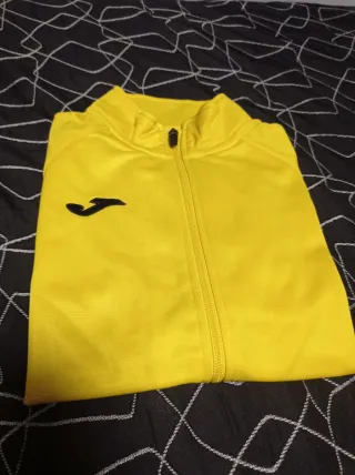 Sudadera deportiva de la marca Joma en color amarillo. - Cierre de cremallera completo. - Cuello alto. - Puños y cintura elásticos. Nunca se ha usado Talla 12 2xs Pantalón a juego en mi perfil Comprando chándal regalo camiseta amarilla