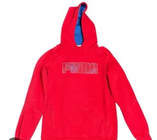 Sudadera con capucha de la marca Puma. - Color rojo vibrante. - Interior de la capucha en azul. - Logo de Puma en el pecho. Bolsillos laterales Talla XL/TG 164cm 13/14 años