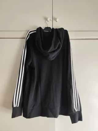 Sudadera con capucha y cremallera completa. - Diseño clásico con las tres rayas icónicas en las mangas. - Logo de Adidas en el pecho. - Detalle de parche con el número 96 en la parte frontal.