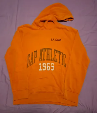 Sudadera con capucha de la marca Gap, con un diseño deportivo. - Estampado Gap Athletic 1969 en la parte delantera. - Pequeño texto S.F. Calif. en la parte superior. - Bolsillo tipo canguro.
