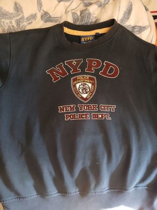 Sudadera con el logo oficial del Departamento de Policía de Nueva York (NYPD). Diseño clásico con el escudo y el nombre del departamento. - Sudadera con cuello redondo. - Estampado NYPD en grande. - Escudo Police Department City of New York en el centro. - Texto New York City Police Dept. debajo del escudo.