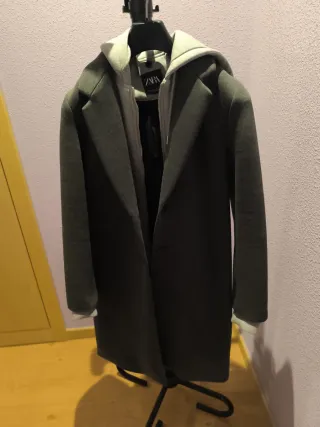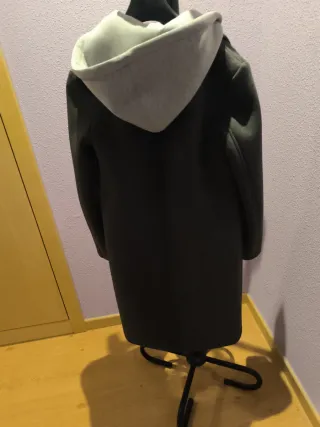 Abrigo de la marca Zara en color gris oscuro,la capucha y puntos tipo sudadera se puede quitar( última foto) muy abrigado pq así no entra nada de frío y si quieres lo quitas y se convierte en un abrigo típico. Sisa 50 Largo 92 Hombros 40 - Diseño moderno y elegante. - Cierre de botón. - Cuello solapa.