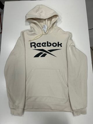 sudadera manga larga con capucha marca reebook muy buen estado usada muy poco. color beige