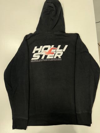 Sudadera con capucha de la marca Hollister. - Diseño frontal con logo. - Estampado en la espalda con el nombre de la marca y ubicaciones. - Tejido suave y cómodo.