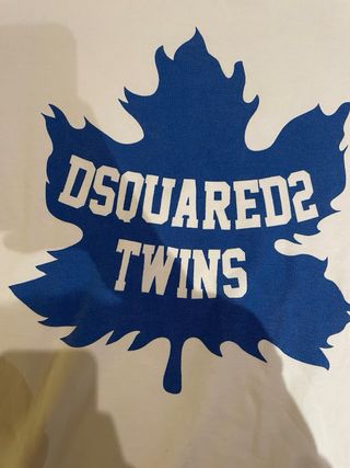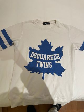 Sudadera blanca con diseño de hoja azul. - Detalle de rayas azules en las mangas. - Estampado frontal DSQUARED2 TWINS sobre hoja. - Cuello redondo.