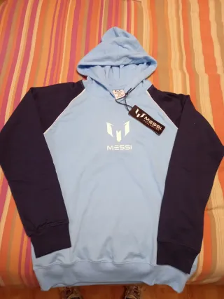 Sudadera con capucha de la colección Messi. Talla 164 14 años - Diseño moderno y cómodo. - Logo de Messi estampado en el pecho. - Mangas de color azul marino.