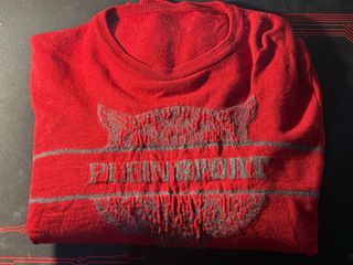 Sudadera de la marca Plein Sport en color rojo. Presenta un diseño gráfico distintivo en la parte frontal. - Diseño con logo y texto. - Cuello redondo.