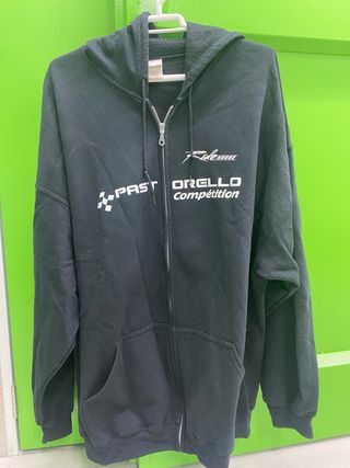 Sudadera con capucha y cremallera completa, con diseño de Pastorello Compétition. - Color negro. - Bolsillo frontal. - Capucha ajustable con cordones.
