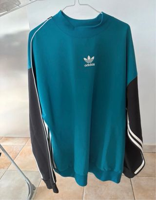 Sudadera de manga larga con un diseño moderno y deportivo. - Logo de Adidas en el pecho. - Rayas blancas en las mangas. - Cuello alto.