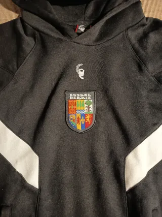 Sudadera Euskal Herria. - Detalle de escudo en el pecho. - Mangas con diseño de franjas verdes, rojas y blancas.