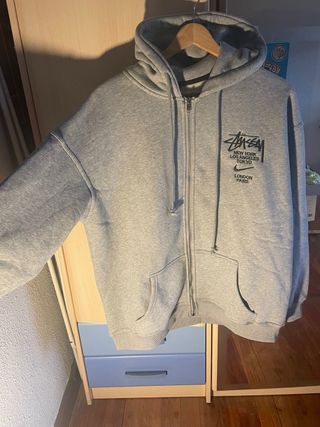 Sudadera con cremallera de la colaboración entre Nike y Stussy. Talla como si fuese M - Diseño con logo Stussy y detalles de ciudades. - Bolsillo frontal tipo canguro. - Capucha con cordones ajustables.