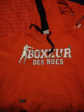 Sudadera con capucha de la marca Boxeur Des Rues. - Color principal rojo. - Detalles en negro. - Diseño con estampado frontal.